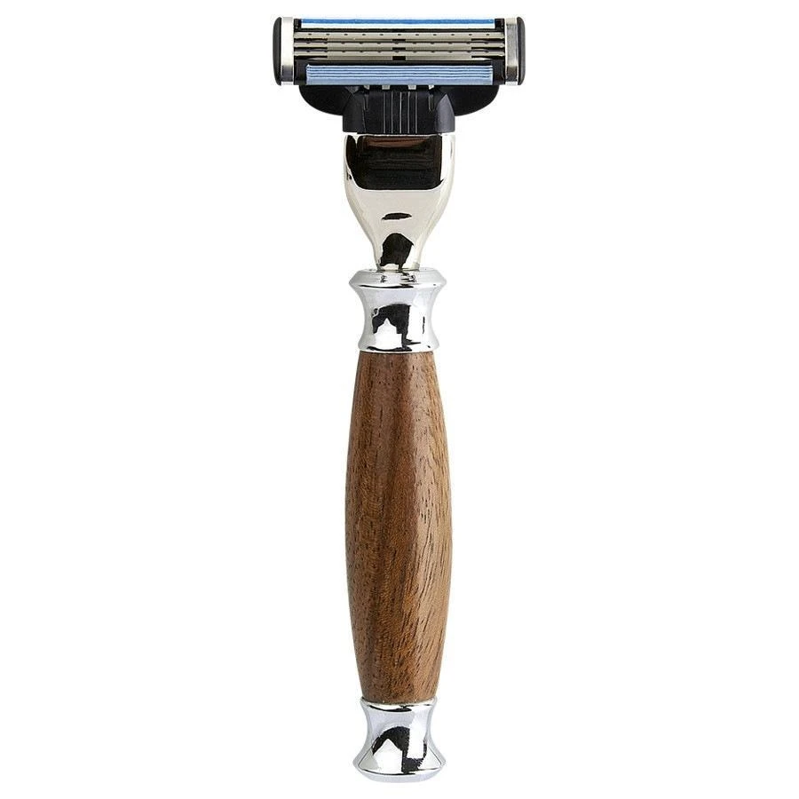 Mach 3 scheermesje met een noten handvat.